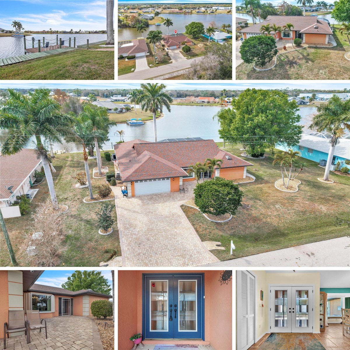 Impressive lakefront pool home offering nearly half an acre with 150 feet of shoreline in the desirable community of Lake Suzy Estates. This beautifully maintained 3-bedroom, 2-bath residence features over 2,100 square feet of living space, including a living and dining area, spacious family room, and an extended lanai overlooking the pool and expansive lake views. A true nature lover’s retreat, enjoy peaceful mornings on the lanai or private dock watching abundant wildlife and waterfowl. The open great room floor plan offers flexible living and showcases soaring vaulted ceilings with plant shelves, tile flooring throughout, accent walls, decorator lighting and fans, and a stunning bay window in the dining area. The kitchen is designed for both everyday living and entertaining, featuring warm wood cabinetry, granite countertops with tile backsplash, stainless steel appliances including a four-door refrigerator, a large closet pantry, breakfast bar, built-in buffet between the kitchen and family room, and a pass-through window to the lanai with granite counter space. The spacious primary suite provides a relaxing retreat with two walk-in closets, a bump-out sitting area, and an en-suite bath offering dual granite vanities and a custom tiled shower. Both guest bedrooms also feature walk-in closets, and the third bedroom includes a queen-size Murphy bed with built-in cabinetry and shelving. The second bath offers a jetted soaking tub and direct lanai and pool access—no more wet footprints through the house. Outdoor living takes center stage with a screened lanai, heated pool, and tranquil lake views. Stroll down the new paver walkway to your private dock to fish or simply unwind and enjoy the scenery. Additional highlights include new fan and motor on pool heater (2025), new windows, storm shutters, hurricane-rated garage door, new roof (2022), AC in the garage, dedicated laundry room with wall-to-wall pantry storage, lake-fed irrigation system new pump 2025, and public water service. The home boasts impressive curb appeal with double etched-glass front doors, screened entry, brick-paver driveway and walkway, landscape curbing with decorative rock, lush tropical foliage, and mature palms. Ideally located near shopping, dining, golf courses, and area waterways, you’ll enjoy easy access to Charlotte Harbor, the Peace River, the Myakka River, and the Gulf of Mexico. Explore nearby parks, walking and biking trails, and waterfront destinations such as Fishermen's Village or historic downtown Punta Gorda and Arcadia. This exceptional lakefront property captures the very best of the Florida lifestyle. Schedule your private showing today.