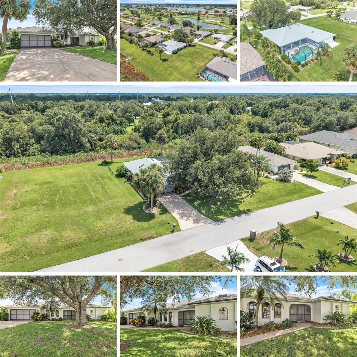 Welcome to this impressive pool home in the highly sought-after, deed-restricted golf community of Deep Creek. Perfectly situated on a dead-end street, this property offers added privacy along with a nicely sized lot and a peaceful greenbelt view in the rear. Best of all, it is not in a flood zone, providing peace of mind along with its many desirable features. Brimming with natural light, the open split-bedroom floor plan includes three spacious bedrooms, two full bathrooms, and an attached two-car garage. A welcoming screened front porch with double-door entry opens to the formal living and dining room, highlighted by high ceilings, skylights, and sliding glass doors that lead to the lanai and pool area. The expansive family room boasts tile flooring, soaring ceilings, a casual dinette, and pocket sliders that seamlessly extend the living space outdoors. The kitchen is both warm and functional, featuring raised-panel wood cabinetry with crown molding, granite countertops, a breakfast bar, pantry closet, and a full suite of appliances. A large window above the sink fills the space with natural light and offers a pleasant view, while recessed lighting showcases the craftsmanship of the cabinetry and backsplash. Just off the kitchen, the laundry room is equipped with a front-loading washer and dryer, built-in cabinets, and a utility sink for added convenience. The generously sized primary suite serves as a private retreat with two walk-in closets, plush carpeting, direct access to the lanai, and an ensuite bath with dual vanities, a relaxing garden tub, walk-in shower, and private water closet. Two guest bedrooms with walk-in closets feature attractive laminate flooring and share a full guest bath with pool access. Outdoor living is truly exceptional with a screened lanai showcasing a sparkling pool, a large, covered area with ceiling fans, and a tiled deck ideal for entertaining or enjoying the Florida sunshine. Additional highlights include a 20x20 garage with retractable screen door, a brand-new roof installed in 2023, A/C from 2015, irrigation system, mature shade oak tree in the front yard, and multiple skylights that bring even more natural light indoors. Ideally located just minutes from golf, shopping, dining, medical facilities, waterfront parks, and I-75, this home combines comfort, style, and convenience in one of Punta Gorda’s most desirable communities. Whether you’re raising a family or hosting seasonal guests, this beautiful property is ready to welcome you.