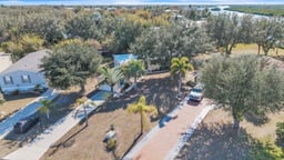 Welcome to Hunter Creek Village, a friendly 55+ waterfront community offering the perfect blend of tranquility and convenience. This turnkey 2-bedroom, 2-bath home offers 1,568 sq. ft. of comfortable living space and sits on a spacious .29-acre cul-de-sac lot. A detached single-car garage with workbench provides ample storage and parking, while the backyard patio creates a welcoming outdoor retreat. Inside, the bright open-concept living and dining areas flow seamlessly into a spacious sunroom, making it ideal for relaxing or entertaining. Vaulted ceilings and abundant natural light enhance the airy feel, and the sunroom offers peaceful views and versatile year-round living space—perfect for morning coffee or gatherings with friends. The dining area features large picture windows with decorative transoms and connects effortlessly to the well-maintained kitchen. The kitchen showcases raised-panel cabinetry (some with glass fronts), classic tile countertops, a generous peninsula for casual dining or meal prep, ample counter space and charming details throughout. A dedicated laundry room with washer and dryer is conveniently located just off the kitchen. The primary suite provides a comfortable retreat with an en-suite bath featuring a walk-in shower, single-sink vanity, and generous storage. The guest bedroom is ideal for visiting family or friends and is served by a full guest bathroom. Additional highlights include hurricane shutters and a new roof installed in 2022. Residents enjoy an active community pool with social gatherings and pool parties, fishing opportunities, on-site RV/boat storage, and an easy golf-cart lifestyle throughout the neighborhood. This beautiful home is in a great community with easy access to shopping, schools, golf courses, restaurants, beaches and I75/US41. Affordable HOA of just $100 per month, which includes common area maintenance, community pool access, and activities.
