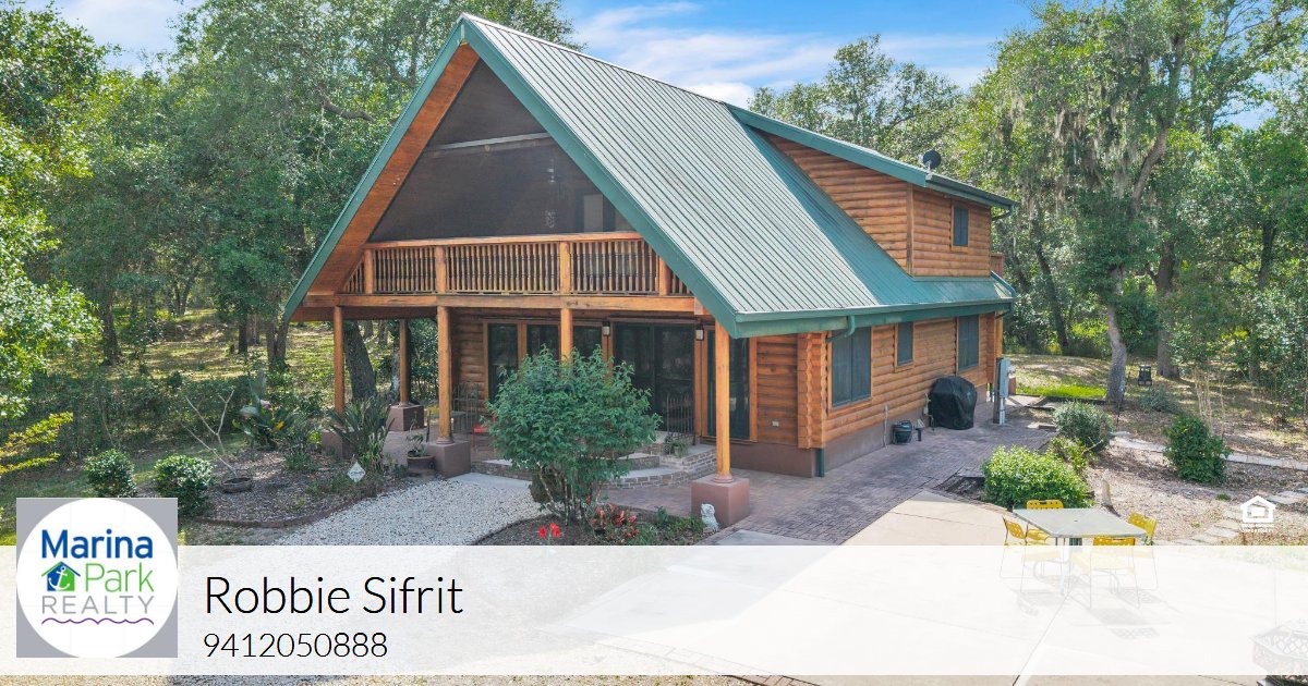 Tucked away on five serene acres, this distinctive two-story A-frame log cabin offers a rare blend of rustic charm and refined finishes, paired with an expansive barn and additional outbuildings for ultimate versatility. Built in 2008, the home features an open-concept first floor where the living, dining, and kitchen areas flow seamlessly, showcasing true log-cabin craftsmanship. Exposed wood beams, soaring ceilings, natural wood flooring, and expansive windows fill the interior with abundant natural light, creating a cozy yet airy ambiance. The well-appointed kitchen is a chef’s dream, with custom wood cabinetry, elegant marble countertops, a decorative tile backsplash, a gas cooktop, built-in convection oven, and a center island with bar seating—perfect for entertaining. Durable tile flooring throughout the kitchen and dining areas adds both style and easy maintenance. French doors open to the outdoor living space, ideal for enjoying the peaceful, private surroundings. The main level also offers two generously sized guest bedrooms with built-in closets and luxury vinyl flooring, a thoughtfully designed guest bathroom with a walk-in shower and marble-top vanity, and a conveniently located laundry room. Upstairs, a spacious loft-style family room opens to a charming front balcony overlooking the expansive front yard. The primary suite features a cedar walk-in closet, a private balcony with views of the backyard and natural landscape, and an updated spa-like bathroom with natural wood ceilings, exposed beams, a custom double vanity, and a large glass-enclosed walk-in shower with floor-to-ceiling tile and abundant natural light. Adding to the property’s appeal, a gated front driveway first leads to the barn before veering to the home, offering exceptional privacy. The 2,000+ square-foot barn includes a small efficiency apartment and multiple versatile rooms, while a detached building provides additional space for storage or a workshop. Although there is no traditional garage, the barn and other structures could accommodate a carport or covered parking. This property seamlessly combines the warmth and character of a log cabin with functional, flexible outbuildings on five acres of privacy—perfect for those seeking a unique retreat, hobby farm, or versatile estate. Located on a peaceful lot in Arcadia, this home offers the perfect balance of privacy and convenience. This property is zoned A-10, offering the perfect setting to bring your horses, raise other livestock, or start a hobby farm. With plenty of space for barns, paddocks, and outdoor activities, it’s ideal for enjoying the rural lifestyle while still being just minutes from downtown Arcadia and easy access to Punta Gorda. Create your private country retreat and take advantage of the freedom and flexibility that A-10 zoning provides. Just minutes from downtown Arcadia, you’ll enjoy easy access to grocery shopping at Publix and Walmart, local favorites like Slim’s Bar-B-Q and Brother’s Fish House, and a variety of casual dining options. Families will appreciate nearby West Elementary, DeSoto Middle, and DeSoto County High School, while outdoor enthusiasts can explore Morgan Park, the Peace River, and local trails for boating, fishing, and picnicking. Enjoy easy access to Punta Gorda, making commuting, shopping, and entertainment simple while still enjoying the charm of a rural retreat.