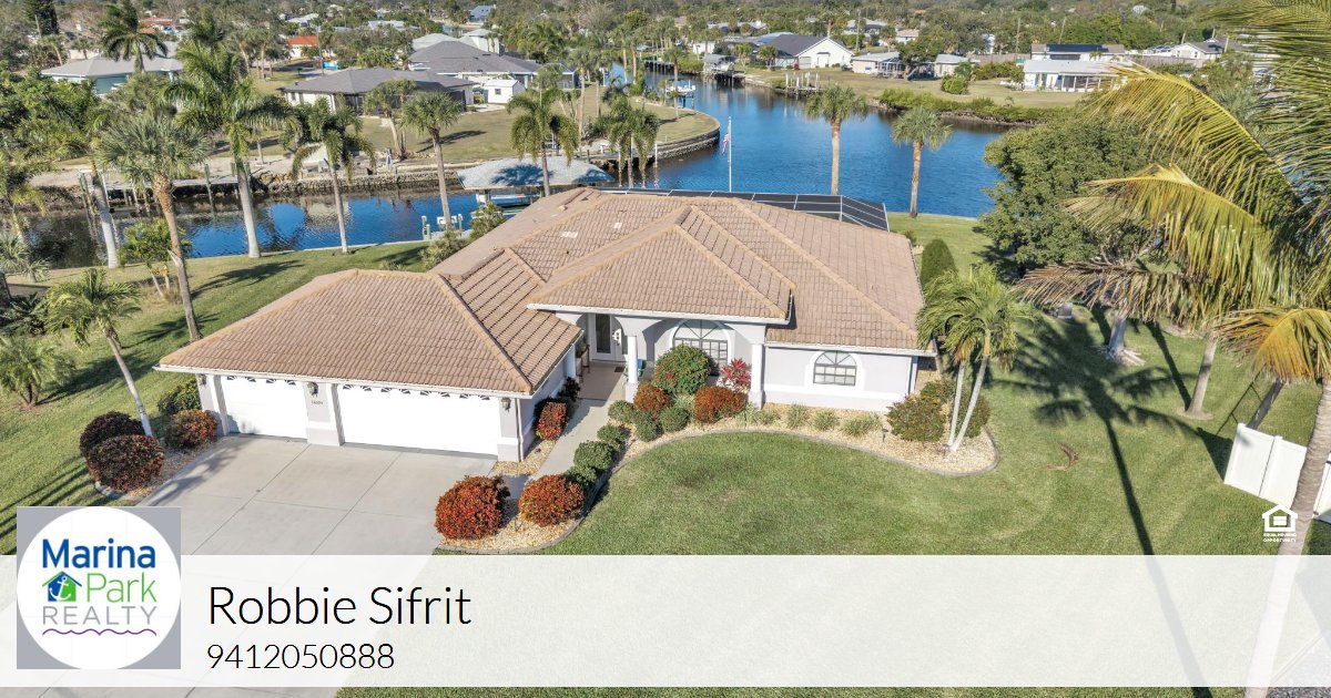 Perfectly positioned on a spectacular tip lot, this luxury waterfront pool home captures breathtaking panoramic views of intersecting canals from nearly every room. With three bedrooms, two and a half baths, and a three-car garage, the property rests on over half an acre of premium saltwater frontage and boasts 202 feet of concrete seawall. Ideal for boating enthusiasts, it includes a 40-foot composite dock, a covered boat lift with water and electric, and a fish light, all just minutes from Charlotte Harbor with direct access to the Gulf of Mexico. This tropical retreat features more than 2,200 square feet of thoughtfully designed living space enhanced by numerous upgrades and four separate entry points to the expanded pool patio, creating seamless indoor-outdoor living. The grand pillared double-door entry immediately draws the eye to the sparkling pool and impressive water vistas that define the home. The open-concept living area offers high ceilings, large tile flooring, and an abundance of natural light flowing through expansive sliding glass doors. The dining and living spaces blend effortlessly with the beautifully appointed kitchen, which features granite countertops, a tiled backsplash, raised-panel cabinetry with pull-out drawers, accent lighting, stainless-steel appliances, a built-in glass-top stove, a pantry closet, and a generous breakfast bar overlooking the breakfast nook. Adjacent to the kitchen, the warm and inviting family room showcases wood flooring and sliding glass doors that open directly to the pool lanai, providing the perfect setting for casual gatherings or quiet evenings with serene water views. The primary suite is a spacious sanctuary with French doors leading to the pool deck, two large walk-in closets, and a spa-inspired bathroom complete with dual sinks, a garden tub, and a Roman shower with custom tile details and built-in seating. On the opposite side of the home, two private guest bedrooms feature plush carpeting, tray ceilings, and built-in closets. They are conveniently situated near a beautifully finished bathroom with a walk-in tiled shower, creating a comfortable and functional guest wing. Stepping outside reveals a stunning waterfront oasis designed for relaxation and entertaining. The covered lanai is enhanced with ceiling fans for year-round comfort, while the resurfaced heated saltwater pool sits within an oversized screened enclosure offering abundant space for lounging and sunning. A convenient pool bath adds to the practicality of this exceptional outdoor retreat. Additional enhancements include a new A/C system installed in 2025, a 2020 water heater, central vacuum, security system, humidistat, irrigation well, water softener, reverse osmosis system, hurricane shutters, and a lighted flagpole. The upgraded landscaping, mature palms, and a double-wide driveway with ample room for both an RV and a boat complete the appeal of this extraordinary waterfront estate. Centrally located near shopping, dining, schools, golf courses, beautiful Gulf beaches, and major roadways including US-41 and I-75.