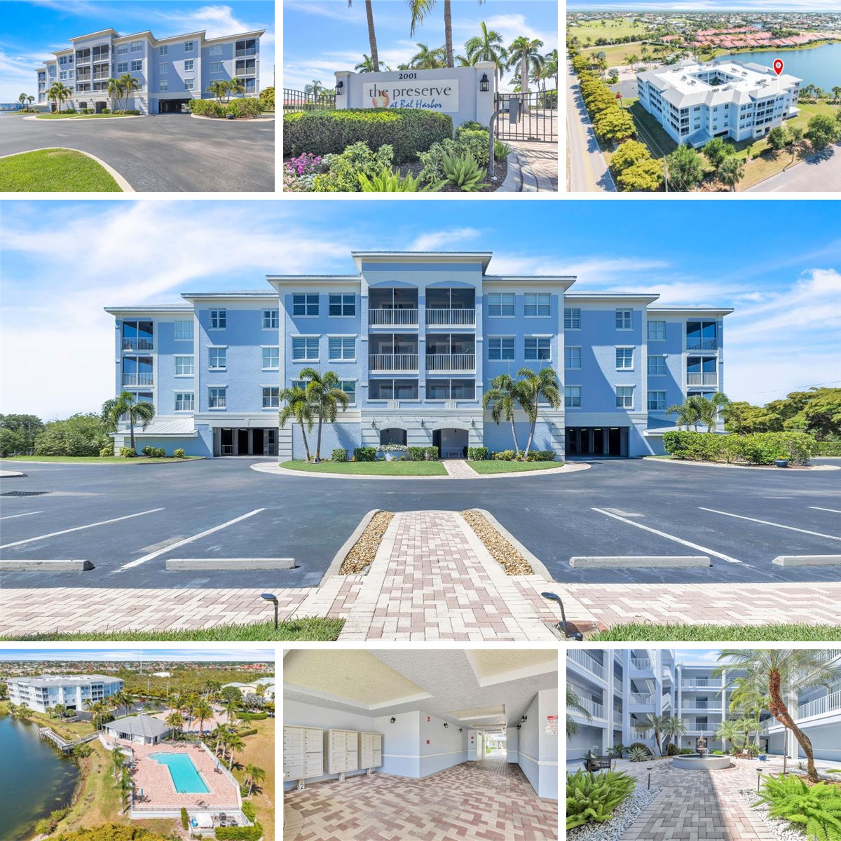 Motivated seller—no hurricane damage! Welcome to the beautifully maintained Preserve at Bal Harbor, where this tastefully appointed second-floor, 2-bedroom condo offers the perfect blend of comfort and Florida charm. Enjoy peaceful lake views from the open-concept living and dining area, designed for easy living and entertaining, with sliding glass doors that lead to a spacious 12x10 screened balcony—ideal for morning coffee or evening relaxation. The interior features stylish accent walls, a mix of tile and carpet flooring, decorator lighting and ceiling fans, recessed lighting, and blinds throughout. The well-equipped kitchen showcases rich wood cabinetry, granite countertops, stainless steel appliances, a pantry, and a breakfast bar that seamlessly connects to the main living space. The expansive primary suite offers private lanai access through sliding glass doors, enhanced by a tray ceiling and a spacious walk-in closet. The en-suite bath is beautifully appointed with a tall wood vanity, granite countertops, a relaxing soaking tub, and a separate custom-tiled shower. A generously sized guest bedroom features a built-in closet and enjoys convenient access to a well-designed bath with a walk-in shower. Additional highlights include a dedicated laundry area with a stacked washer and dryer (new in 2021), impact-resistant windows, and garage storage. Residents enjoy exceptional amenities, including a heated pool, clubhouse, gated entry, and a beautifully landscaped courtyard with a central fountain. The boutique complex features just 36 units, two elevators, underground assigned parking, extra storage, and a scenic lakefront setting with a dock. Condo fees cover water, sewer, trash, exterior maintenance, landscaping, pool and clubhouse upkeep, basic cable, and common area maintenance for added convenience. Ideally located near waterways, Gulf beaches, dining, shopping, and golf courses, this home offers easy access to waterfront parks with walking and biking trails, picnic areas, and boat ramps leading to the Peace and Myakka Rivers, Charlotte Harbor, and the Gulf of Mexico. Just minutes from historic downtown Punta Gorda and Fishermen’s Village, you’ll enjoy a quiet community with all the best of Southwest Florida living right at your doorstep.