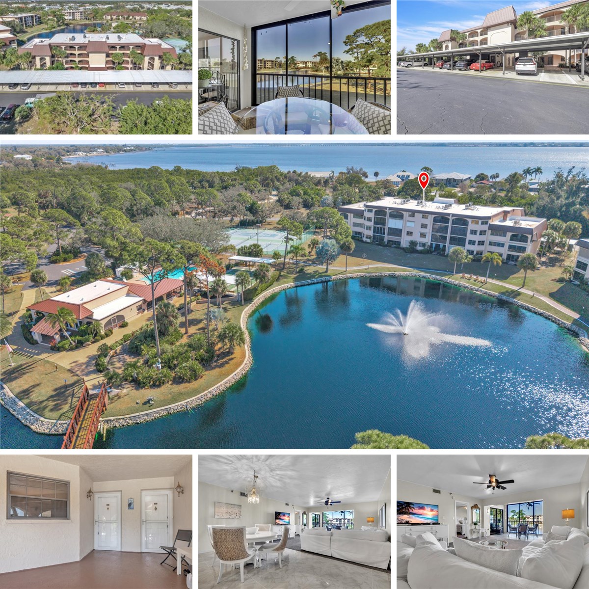 Discover the gated waterfront community of Rolls Landing, where serene Florida living meets effortless access to Charlotte Harbor and the Gulf of Mexico. This desirable, gulf-access community offers first-come, first-serve boat docking, making it easy to enjoy boating, fishing, and coastal adventures just moments from your door. This meticulously maintained second-floor condo offers 1,405 square feet of thoughtfully designed living space with two bedrooms and two bathrooms. Upon entry, a spacious dining and living area flows seamlessly into the enclosed lanai, now fully integrated into the main living area, creating an expanded, light-filled space with tranquil views of the shimmering lake, lush gardens, and scenic walking paths. The bright, open kitchen is thoughtfully appointed with ample cabinetry featuring pull-out shelving, high-definition laminate countertops, a coordinating tile backsplash, stainless steel appliances, a trash compactor, a walk-in pantry, and a breakfast bar—ideal for both everyday living and entertaining. The primary suite is a peaceful retreat featuring lake views, a ceiling fan, and a walk-in closet. The en-suite bathroom offers dual sinks and a spacious walk-in shower. A generously sized guest bedroom and full guest bathroom provide comfort and privacy for visitors. Additional highlights include an in-unit laundry room, extra storage, and recent updates such as an upgraded electrical panel (2019), A/C (2015), water heater (2021), and impact-resistant sliding windows along the former lanai, enhancing comfort and energy efficiency. Community fees include water, sewer, and cable, along with access to outstanding amenities such as a heated pool, tennis courts, four pickleball courts, a fitness center, fishing pier, and storage for boats, trailers, and kayaks. Covered parking and ample guest parking add everyday convenience. Ideally located near shopping, dining, schools, hospitals, and I-75, Rolls Landing offers a beautifully maintained, park-like setting where every day feels like a vacation. Embrace the coastal lifestyle and make this exceptional condo your Florida retreat.