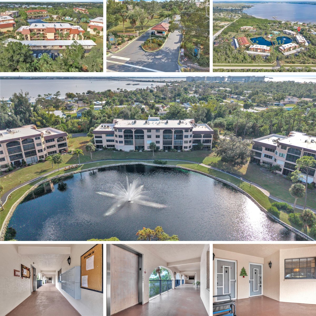 Welcome to Rolls Landing, a gated waterfront community offering Gulf-access boating to Charlotte Harbor and the Gulf of Mexico, with first-come, first-serve boat docks. Lush, garden-like landscaping and brick paver walkways create an inviting setting that immediately captures the essence of relaxed Florida living. This second-floor, two-bedroom, two-bath residence features peaceful lake views, convenient elevator access, an assigned covered parking space, and ample guest parking. The open living and dining area is filled with natural light and showcases picturesque views of the lake and charming walking bridge, enhanced by wood-look tile flooring that is both stylish and practical for everyday living and entertaining. Sliding glass doors open to a private 16x9 balcony, the perfect spot to enjoy morning coffee or unwind while taking in tranquil sunsets. The kitchen offers ample cabinet and counter space, a walk-in pantry, and a suite of appliances including a trash compactor, along with a breakfast bar that opens seamlessly to the main living area. A convenient in-unit washer and dryer add to the ease of living. The primary bedroom overlooks the lake and features a ceiling fan, walk-in closet, private access to the balcony, and an en-suite bath with an updated walk-in shower and extended dual sink vanity. A bright and spacious guest bedroom comfortably accommodates visiting family and friends and access to its own full bathroom. Condo fees include cable TV, water, and sewer, as well as access to an impressive array of resort-style amenities. Rolls Landing offers 24-hour on-site security, a clubhouse with a kitchen for entertaining, a fitness center, heated community pool and spa, tennis courts, shuffleboard, pickleball, bocce ball, ping pong, billiards, and a community library with workspace. Outdoor amenities include an inviting fire pit, two gas grills, car and boat washing stations, a community garden with a watering station, and scenic biking and walking trails. For boating and fishing enthusiasts, the community also provides kayak storage, boat trailer parking, dry boat storage, and boat slips, while the fishing pier extends several hundred feet and features 24 boat slips and a tiki hut—an ideal spot to enjoy breathtaking sunrises and sunsets over the water.