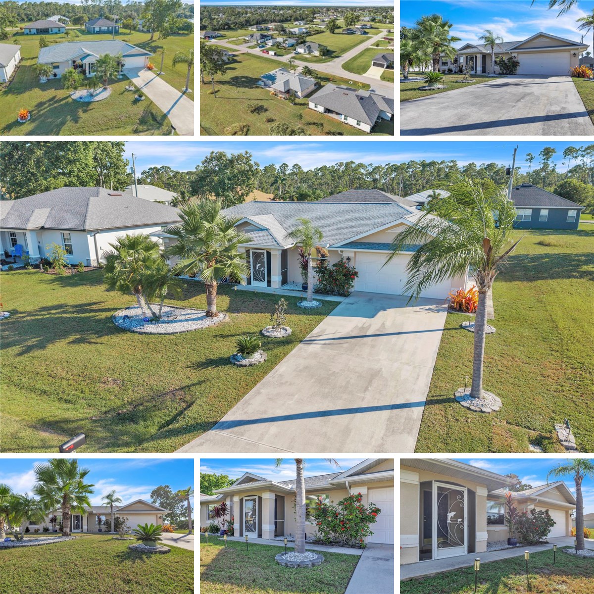 Nestled in the tranquil, deed-restricted community of Burnt Store Village, this charming 3-bedroom, 2-bath home offers over 1,300 sq. ft. of comfortable living space. Situated on a quiet street, the property features a welcoming exterior with a spacious driveway leading to a 2-car garage, lush landscaping accented by mature palm trees, and a covered front entryway. Recent upgrades include a new roof and A/C, providing peace of mind and modern convenience. The generous lot offers plenty of open space and privacy, while the surrounding neighborhood is beautifully maintained, creating a serene setting for your next home. Inside the home showcases cathedral ceilings and tile flooring throughout the main living areas including a dining area with sliders out to the lanai. This bright and functional kitchen offers a perfect blend of style and convenience. Featuring crisp white cabinetry, sleek marble-look countertops, and a modern stainless steel appliance suite, the space is designed for both everyday living and entertaining. A colorful mosaic backsplash adds a pop of personality. The layout flows seamlessly—on one end, the kitchen opens to the living and dining areas, creating an inviting space for gatherings, and on the other, a cozy dinette provides the ideal spot for casual meals or morning coffee. Large windows bring in natural light, enhancing the warm tones of the walls and making this kitchen feel open and welcoming. The primary suite features a vaulted ceiling and a private bath with a walk-in shower. The split floor plan ensures privacy for guests, with two additional bedrooms and a separate full bath. All bedrooms have Berber carpeting. Step outside to your screened-in lanai with southern exposure, perfect for soaking up the Florida sunshine and enjoying serene greenbelt views—plus, there’s room to add a pool. Burnt Store Village offers a peaceful, laid-back lifestyle with walking trails, scenic lakes, and a community park. Ideally located just 20 minutes from downtown Punta Gorda and 30 minutes from Fort Myers, you’ll also be near Burnt Store Marina, where you can enjoy golfing, resort amenities, waterfront dining, and entertainment. Conveniently close to the airport, restaurants, shopping, and world-class fishing and boating, this home is just a short drive from the breathtaking Gulf beaches.