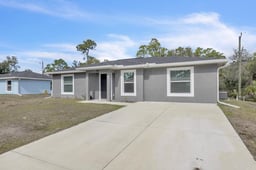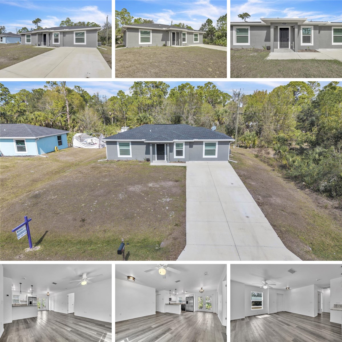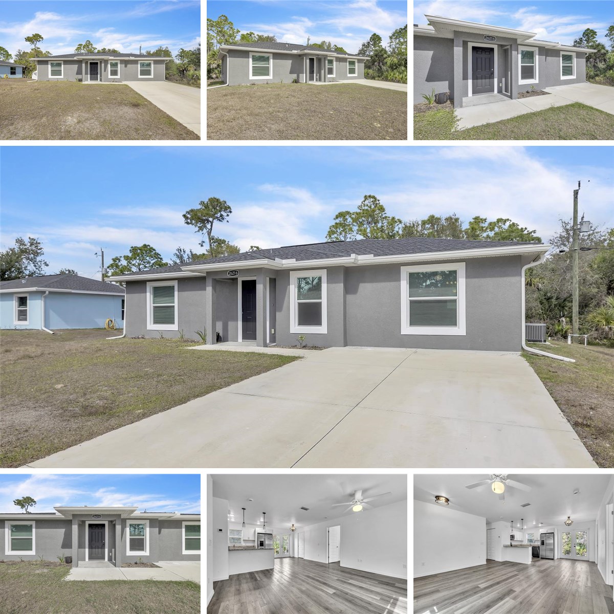 Skip the stress of building and move right into this beautifully crafted 2024, 3-bedroom, 2-bath home located in the peaceful rural community of Tropical Gulf Acres. Designed with both comfort and functionality in mind, this home features an open-concept layout anchored by a spacious great room—ideal for everyday living and effortless entertaining. Interior highlights include elegant wood-look luxury vinyl flooring throughout, modern light and ceiling fan fixtures, and recessed lighting that adds a contemporary touch. The kitchen truly shines with granite countertops, an abundance of shaker-style cabinetry, stainless steel appliances, and a breakfast bar that flows seamlessly into the main living area—perfect for hosting guests. The primary suite offers a relaxing retreat with a walk-in closet and a private en-suite bath featuring a granite-topped vanity and walk-in shower. Guest bedrooms provide comfortable accommodations with built-in closets and easy access to a full bathroom. The well-appointed laundry room includes a convenient utility sink, adding extra functionality for everyday tasks. A whole-home water softener enhances comfort and efficiency, while hurricane-impact windows throughout provide superior storm protection, energy efficiency, and year-round peace of mind. French doors open to a large backyard, offering endless possibilities to create your ideal outdoor living space—add a patio, pool, garden, or simply enjoy the open area and Florida sunshine. Whether you’re unwinding outdoors or gathering with friends in the bright, open living space, this home delivers a perfect blend of comfort and modern style. Situated in a quiet, family-friendly neighborhood with no HOA or CDD, the location offers the best of both worlds—country-like tranquility with easy access to historic downtown Punta Gorda, Fishermen’s Village, dining, shopping, waterfront parks, and community events. Convenient to I-75 and US-41, and close to both Punta Gorda Airport and Southwest Florida International Airport, with a reasonable commute to Port Charlotte, Fort Myers, and Cape Coral.