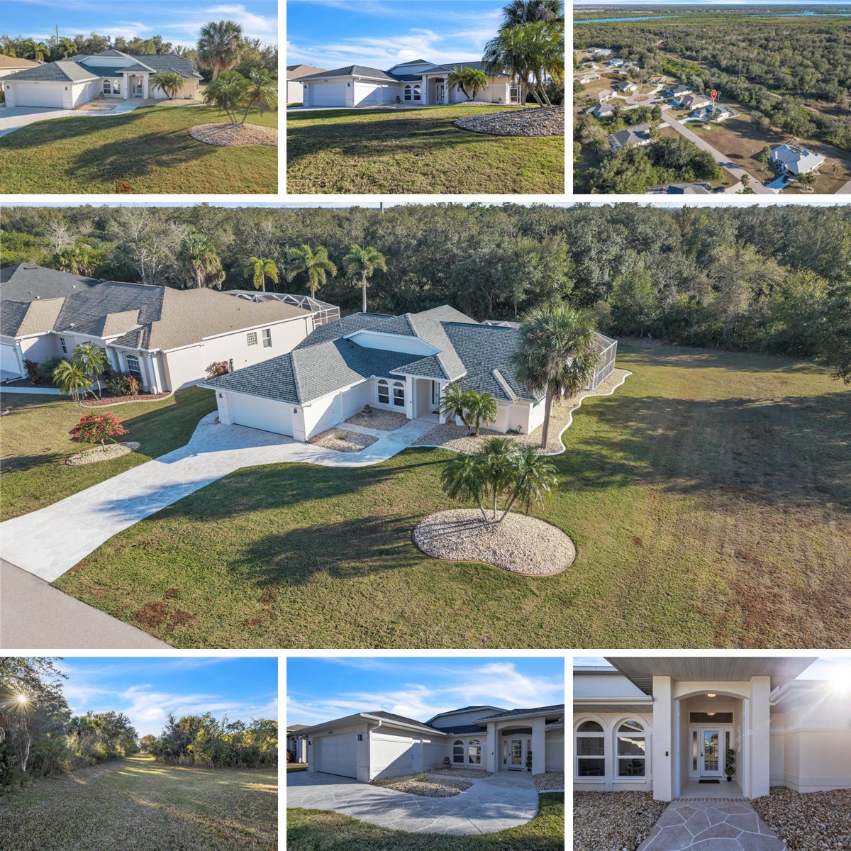 It’s all here for you! Come and make this perfect piece of paradise yours today! This thoughtfully remodeled home has it all! You will love the bright and sunny open floorplan with vaulted ceilings with a fabulous view to the pool and spa when you enter. This particular area of Deep Creek is tucked away, private and serene - an absolute oasis! The 2024–2025 renovation includes new flooring and baseboards throughout, fresh interior paint, updated lighting and ceiling fans, and a fully remodeled primary suite. The spa-like primary bath features new cabinetry, granite countertops, soaking tub, spot free glass shower enclosure, updated fixtures, and lighting. The guest bath has also been refreshed with a new vanity, granite, fixtures, and lighting. The kitchen is equipped with a Café appliance’s (2023) and enhanced by a multi-stage whole-house water filtration system plus reverse osmosis at the sink and refrigerator. Additional upgrades include new closet and pantry doors, washer and dryer, hot water heater, front door, and electrical panel. Step outside to a private backyard setting with a serene greenbelt view, offering a peaceful buffer and no rear neighbors—an ideal backdrop for relaxing, entertaining, or enjoying Florida living in total privacy. Outdoor features include a resurfaced pool and spa, updated pool equipment, and an irrigation system with well pump and Wi-Fi smart controller. Although no damage from most recent storms, hurricane readiness is exceptional, featuring new impact windows and doors, impact-rated garage door, remote-controlled hurricane shutters, upgraded hardware, and a Honda generator with dedicated panel hookup. Smart-home and security features include a Ring security system with professional monitoring, smart switches and outlets throughout, and SmartThings/Alexa integration. Situated in an X flood zone (no flood insurance required), this move-in-ready home combines privacy, peace of mind, and modern comfort, all in one of the area’s most sought-after communities.