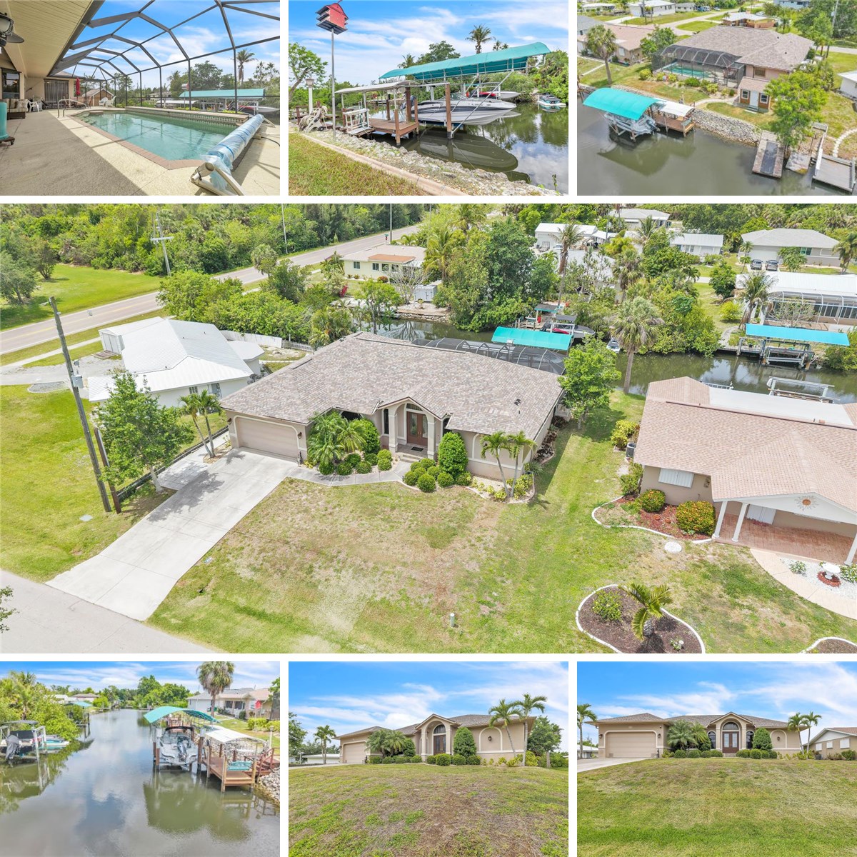 Move right in and begin enjoying this beautifully maintained waterfront 3-bedroom, 2-bath, 2-car garage home with a heated pool. Built in 2006 by Tim Towles, this residence offers 1,900 square feet of living space and was constructed to modern building codes. The home includes clear hurricane panels and sits on an elevated lot, helping to keep flood insurance costs low. With 80 feet of water frontage, the property features a covered private dock with water and electric, a newer covered boat lift, and a wooden boat ramp, providing direct boating access to Charlotte Harbor and onward to the Gulf of Mexico—ideal for fishing, cruising, and waterfront dining. The welcoming exterior showcases a covered, tiled entryway and striking 8-foot etched double front doors. Inside, the open living and dining area is highlighted by vaulted ceilings, tile flooring, and abundant natural light. Spacious seating areas and clear sightlines make this space ideal for everyday living or entertaining, all while enjoying tranquil pool and water views. The kitchen is thoughtfully designed for both cooking and entertaining, offering a spacious breakfast bar, under-cabinet lighting, an appliance garage, and white Shaker-style cabinetry with beadboard accents and contrasting hardware. Level 4 granite countertops, typically found in luxury homes, elevate the space, while a high-end refrigerator with dual ice makers and a door-in-door feature adds modern convenience. Large pocketing sliding glass doors open to the covered lanai, and an additional glass door from the breakfast nook provides easy pool access. Just off the kitchen is a dedicated laundry room with washer and dryer, utility sink, and ample extra storage, adding everyday convenience. The spacious primary suite is a private retreat featuring direct pool access, plush carpeting, and two large walk-in closets. The en-suite bath offers a spa-like experience with a dual-sink vanity, walk-in tiled shower with glass enclosure, soaking tub beneath a window, and a separate toilet room. On the opposite side of the home, two guest bedrooms provide privacy for family or visitors. One includes a walk-in closet and pocket slider to the pool, and both share a full guest bathroom—ideal for guests or flexible living arrangements. Outdoor living truly shines with a covered lanai featuring a ceiling fan, outdoor kitchen, and convenient outdoor shower. The heated pool includes a built-in table, raised ledge with waterfall feature, and expanded deck space perfect for dining, entertaining, or sun lounging. Additional highlights include a high-efficiency Trane A/C system with hot water recovery connected to the water heater, storage sheds, and a two-car garage with a stained floor and extra storage shelving. Located in Punta Gorda’s desirable Charlotte Park neighborhood, this home offers easy access—by boat or car—to historic downtown Punta Gorda, waterfront dining, boutique shopping, parks, and year-round community events along Charlotte Harbor. Nearby boat ramps, marinas, Laishley Park, and Ponce De Leon Park enhance the outdoor lifestyle, while Punta Gorda Airport (PGD) is just 10–15 minutes away. Healthcare, schools, shopping, and dining are all close by, making this an ideal property for full-time living or seasonal enjoyment.
