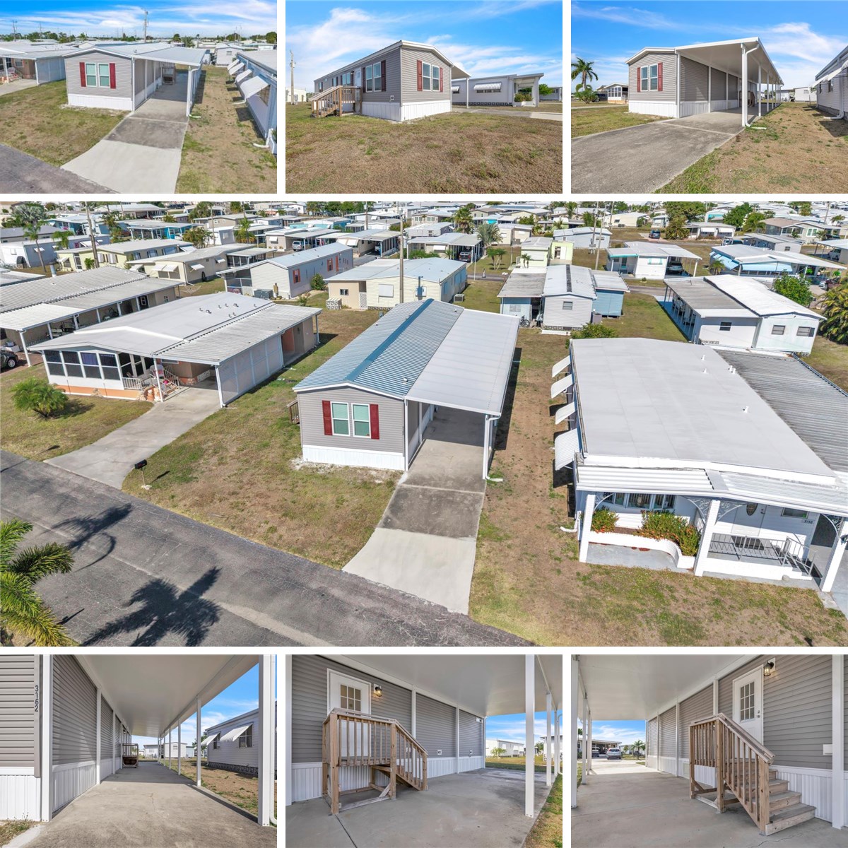 Welcome to the 55 & over Tamiami Village in North Fort Myers! From the moment you step inside, you’ll love this brand-new 2024 single-wide, 2-bedroom, 2-bath home with a covered carport. Thoughtfully designed with a bright, open-concept layout, the kitchen flows seamlessly into the living and dining areas, creating a spacious feel rarely found in a single-wide modular home. The kitchen is the heart of the home, featuring a large center island with bar seating—ideal for casual dining and entertaining—along with modern pendant lighting and a sleek stainless-steel sink and faucet. Crisp cabinetry with upper crown molding, stylish countertops, and stainless-steel appliances, including a European-style range hood, offer both functionality and contemporary appeal. Open sightlines keep you connected to the living and dining spaces, while durable luxury vinyl flooring throughout provides a cohesive look and easy maintenance. The primary suite includes a private en-suite bath with a dual-sink vanity, a walk-in tiled shower with a rainfall showerhead, and a walk-in closet. The guest bedroom offers a spacious built-in closet and convenient access to a full bathroom. A full-size washer and dryer are conveniently located in the hallway, completing this well-appointed home. Additional highlights include transferable warranties, featuring a 10-year structural warranty and 7-year systems and appliance warranties for added peace of mind. Exterior construction features include a durable 29-gauge Power Ribbed metal roof with a Cool Chemistry coil coated finish, fully vented vinyl soffits beneath 8-inch overhangs for improved airflow, and vinyl Thermopane windows with Low-E glass to enhance energy efficiency and comfort year-round. This Home is conveniently located within a short walking distance of the pool and Clubhouse. Tamiami Village Offers an Abundance of Amenities, Including 3 Swimming Pools, a Spa, Shuffleboard Courts, Horseshoes, Billiards, Two Clubhouses, a Fitness Center, Library, and a Variety of Social Activities. Join this Vibrant and Active Community Today!