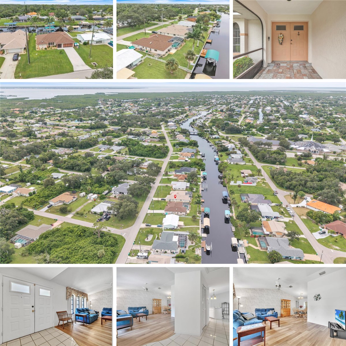 Don’t miss this exceptional opportunity to own a beautiful 3-bedroom, 2-bath waterfront pool home with attached garage, perfectly located in the heart of Port Charlotte. With 80 feet on the Pellam Waterway, this property offers a short boat ride to Charlotte Harbor and the Gulf of Mexico—an absolute boater’s dream. Featuring 2,239 sq. ft. of thoughtfully designed living space, the home blends comfort and functionality throughout. Step through the foyer into a bright and open living area with tile flooring and new wood laminate. Sliding glass doors lead to the expansive Florida Room, creating a seamless flow for indoor-outdoor living. A dedicated dining area sits just off the living room, while the spacious kitchen offers Corian countertops with matching backsplash, modern appliances, breakfast bar seating, a serving window to the Florida Room, an abundance of cabinet and drawer storage—all overlooking the family room with cathedral ceilings and skylight. The private primary suite is a peaceful retreat with direct pool access, plush carpet, dual walk-in closets, and an en-suite bath featuring dual vanities, large mirrors, a walk-in shower, and private water closet. Two additional bedrooms, each with walk-in closets, share a full bath. The 30x12 air-conditioned Florida Room, lined with sliders, opens to your backyard oasis. Enjoy the heated, screened-in pool with a relaxing bench and built-in jets, along with the spacious deck, or take advantage of the boater’s amenities: covered boat lift, dock with electric and water and a tiled patio overlooking the waterway. Notable upgrades include: extended laundry room with washer/dryer, new A/C (2024), new pool chlorinator (2024), shingle roof (2022), four new skylights, whole house re-plumbed overhead (2020), Low Pressure Sewer County maintained (2021), well for irrigation, fresh exterior paint, updated light fixtures, and Boat Lift Canopy and frame (2023). Importantly, the home did not experience flooding from previous storms, offering peace of mind. Located in a quiet, established neighborhood, this home is minutes from Port Charlotte Beach Park with its public beach, boat ramp, picnic areas, and tennis courts, plus convenient access to US-41, I-75, shopping, dining, hospitals, and the area’s top-rated Gulf beaches. This is your chance to own a piece of waterfront paradise