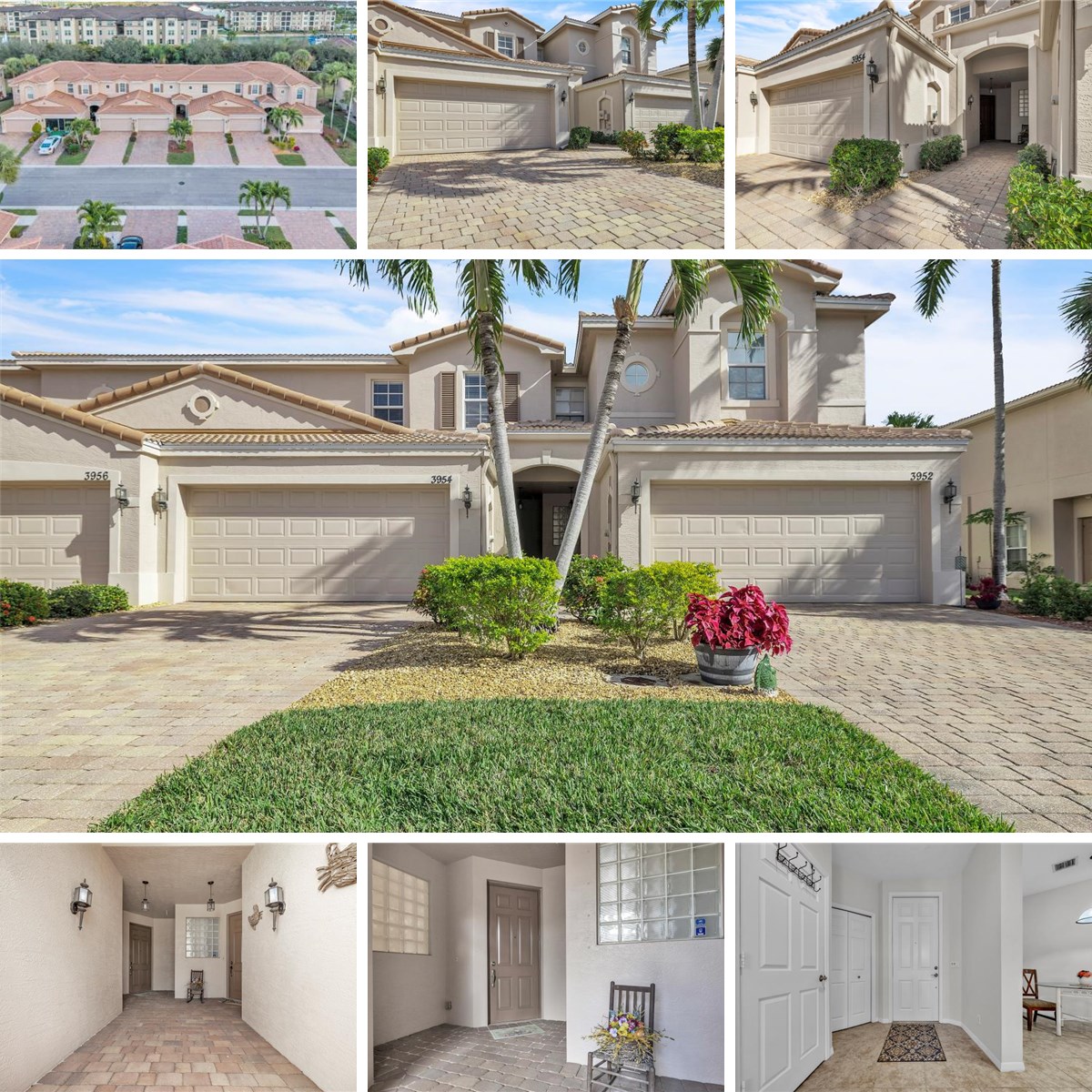 Located within the gated San Simeon community in Fort Myers, this two-story townhouse is part of a well-maintained building of seven residences and features an attached two-car garage. Offering 1,650 square feet of thoughtfully designed living space, the home includes three bedrooms and two-and-a-half bathrooms in a functional layout ideal for full-time or seasonal living. A charming covered front entry, framed by elegant Mediterranean-style architecture, welcomes you inside, while a paver driveway and walkway lead to the recessed front door and garage, providing strong curb appeal and everyday convenience. Neutral exterior tones, a classic tile roof, and manicured landscaping create a clean, upscale impression from the moment you arrive. Upon entering, the foyer opens seamlessly into the living and dining areas, all finished with tile flooring throughout the first floor for easy maintenance and a cohesive look. Sliding glass doors extend the living space to the screened lanai, which features paver flooring, offering a comfortable indoor-outdoor lifestyle. The spacious eat-in kitchen is well appointed with stainless-steel appliances, abundant cabinet and drawer storage, a pantry closet, and recessed lighting for both style and functionality. A convenient half bathroom just off the foyer, along with additional closet space, adds to the home’s thoughtful storage design. A wood staircase leads to the second floor, where the primary suite is highlighted by elegant tray ceilings, an expansive walk-in closet, and a spa-like bathroom with a soaking tub, walk-in shower, dual single-sink vanities, and a private toilet room. Two generously sized guest bedrooms, each with built-in closets, share a full bathroom. Wood-look tile flooring extends throughout the second floor, combining style and durability, and a conveniently located laundry room completes the upper level. Impact-resistant windows provide added peace of mind throughout the home. A new roof, installed in 2024, enhances both protection and value, while residents enjoy resort-style amenities including a fully equipped fitness center, sparkling swimming pool and spa, children’s play area, and clubhouse. This thoughtfully maintained residence blends comfort, style, and convenience in one exceptional package. Centrally located, the home offers easy access to major shopping centers, restaurants, Southwest Florida International Airport, parks, and I-75, combining convenience with a vibrant Fort Myers lifestyle.