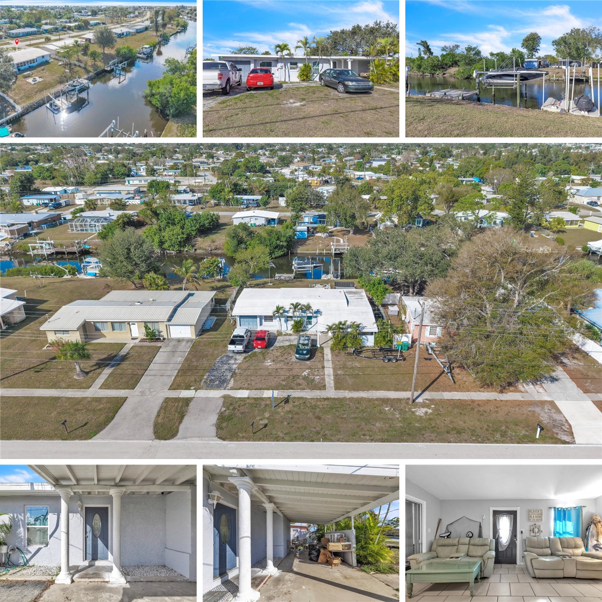 This waterfront gem offers 75 feet of frontage on the Fordham Waterway, complete with riprap seawall installed in 2023, wood dock, floating dock, and a 7,000-pound boat lift installed in 2021, providing direct access to Charlotte Harbor and the Gulf of Mexico. With 1,179 square feet of well-designed living space, this 3-bedroom, 2-bath home with an attached oversized single-car garage with extra storage space is perfectly suited for both relaxed waterfront living and entertaining. The home features a living/dining room combination and a rear conversion that creates a spacious family-style room with an additional bonus room—ideal for a home office, hobby space, or entertainment area. A door from this space opens directly to the backyard, allowing seamless indoor-outdoor living. Tile flooring throughout ensures easy maintenance. The kitchen is appointed with granite countertops, wood cabinetry, and stainless-steel appliances. A bonus room just off the kitchen offers flexible use—it could serve as a pantry, breakfast nook, or extra storage space. The primary bedroom includes an attached full bath, while the two additional bedrooms share a full bathroom with a walk-in shower conveniently located near the laundry room. Step outside to a fenced backyard with a freestanding hot tub and fire pit—perfect for relaxing or entertaining while enjoying the waterfront views. The home’s roof received a modified rubber (modified bitumen) system in 2011, with a protective coating added in 2025 to enhance waterproofing and extend its life. A new water heater was also installed in 2025. Conveniently located close to shopping, dining, parks, gulf beaches, boating, golf, and an award-winning hospital, this property combines the best of waterfront living with everyday convenience.