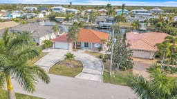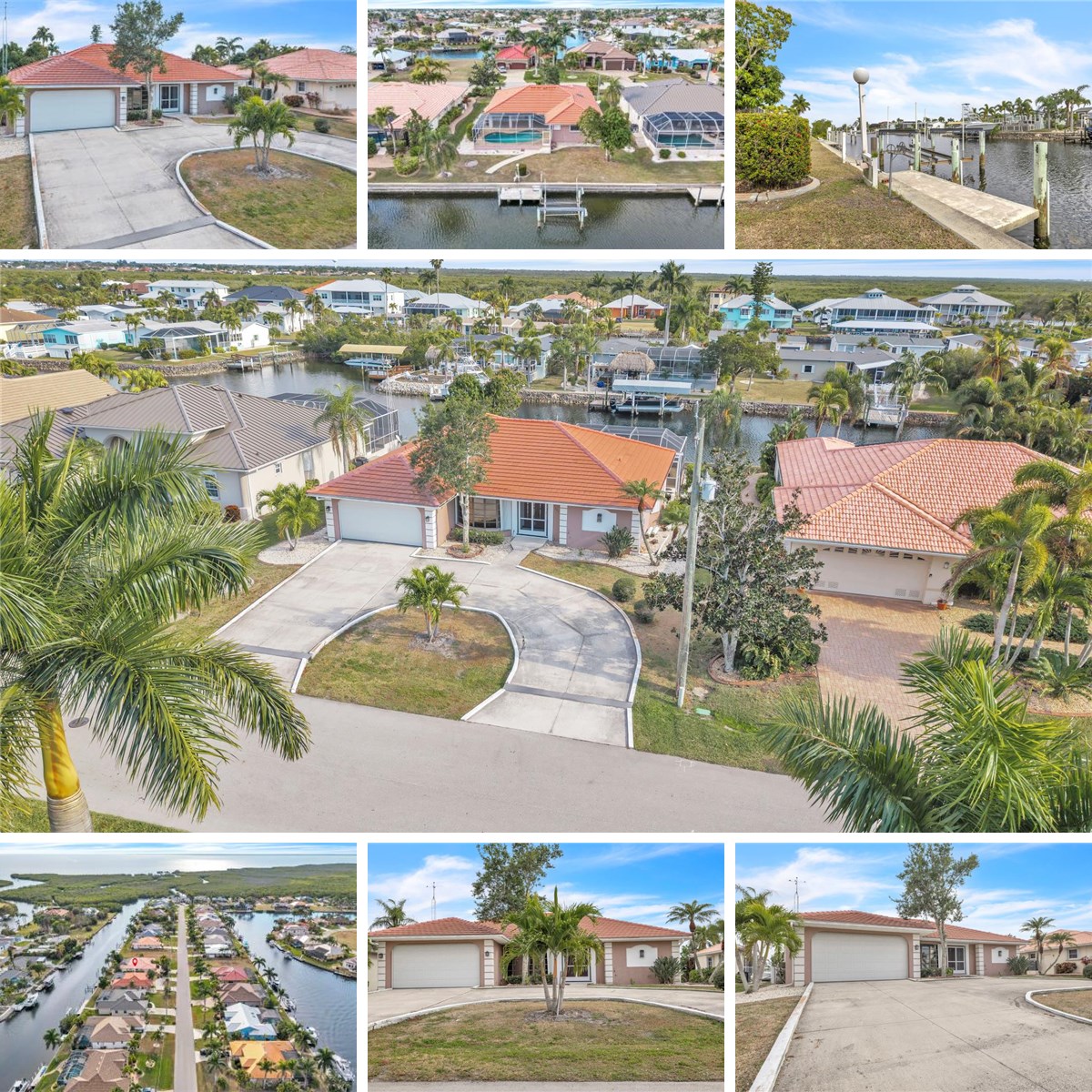 Waterfront Living in Punta Gorda Isles! Located in the highly desirable Punta Gorda Isles, this inviting 3-bedroom, 2-bathroom waterfront pool home offers lovely curb appeal with a spacious circular driveway, a 2-car garage, and mature tropical landscaping that complements its classic tile roof. Featuring 2,040 square feet of living space—including a welcoming family room - this home is designed for relaxed Florida living from the outside in. The property boasts 80 feet of waterfront with a city-maintained seawall for added peace of mind, along with a concrete dock equipped with a boat lift, water, and electric. Enjoy quick boating access to Charlotte Harbor and the Gulf of Mexico—making this a true haven for water enthusiasts. A sparkling pool and generous outdoor space complete the serene backyard setting, surrounded by well-kept neighboring homes in one of Punta Gorda’s most desirable waterfront areas. Upon entering the home you are greeted by soaring ceilings and a formal living and dining room. Sliders in the living room open the space up to the lanai pool area while the bright and welcoming dining room features a beautiful bay-style window that fills the space with natural light and offers a lovely view of the front landscape. Elegant chair-rail molding and decorative wall paneling add a touch of classic charm, while the neutral color palette makes it easy to complement any décor style. This spacious kitchen is perfectly designed for everyday living and entertaining, offering a seamless open view into the family room. Featuring sleek stainless-steel appliances, granite countertops, and an abundance of classic raised-panel cabinetry, the space feels bright, clean, and inviting. A convenient breakfast peninsula provides extra seating and prep space, while the adjacent dinette area is surrounded by natural light and offers direct access to the pool and lanai. Whether cooking, gathering, or enjoying casual meals, this kitchen serves as the central hub of the home with an effortless flow to the main living areas. The spacious primary suite offers private access to the pool area, a huge walk-in closet and features plush carpeting for added comfort. The attached bathroom offers a bright, modern feel with its crisp white cabinetry and dual sink expansive countertop. The highlight of the space is the large, beautifully tiled walk-in shower featuring a frameless glass enclosure with sleek fixtures. Two additional guest bedrooms are located on the opposite side of the home, providing privacy and comfort for family or visitors, and share a full guest bath. Step outside to your own private oasis featuring a covered lanai with ceiling fans for year-round comfort, overlooking a screened-in, sparkling heated swimming pool. An outdoor shower enhances the space, making it perfect for relaxing, entertaining, and fully embracing the Florida lifestyle. Additional highlights include an interior laundry room with utility sink and extra storage, plus a new A/C installed in 2025. Close to I-75/US41 and nearby to Fishermen's Village, downtown Punta Gorda shops & restaurants, great boating, fishing, sailing, and more. Come enjoy the Florida lifestyle in this PGI home.