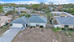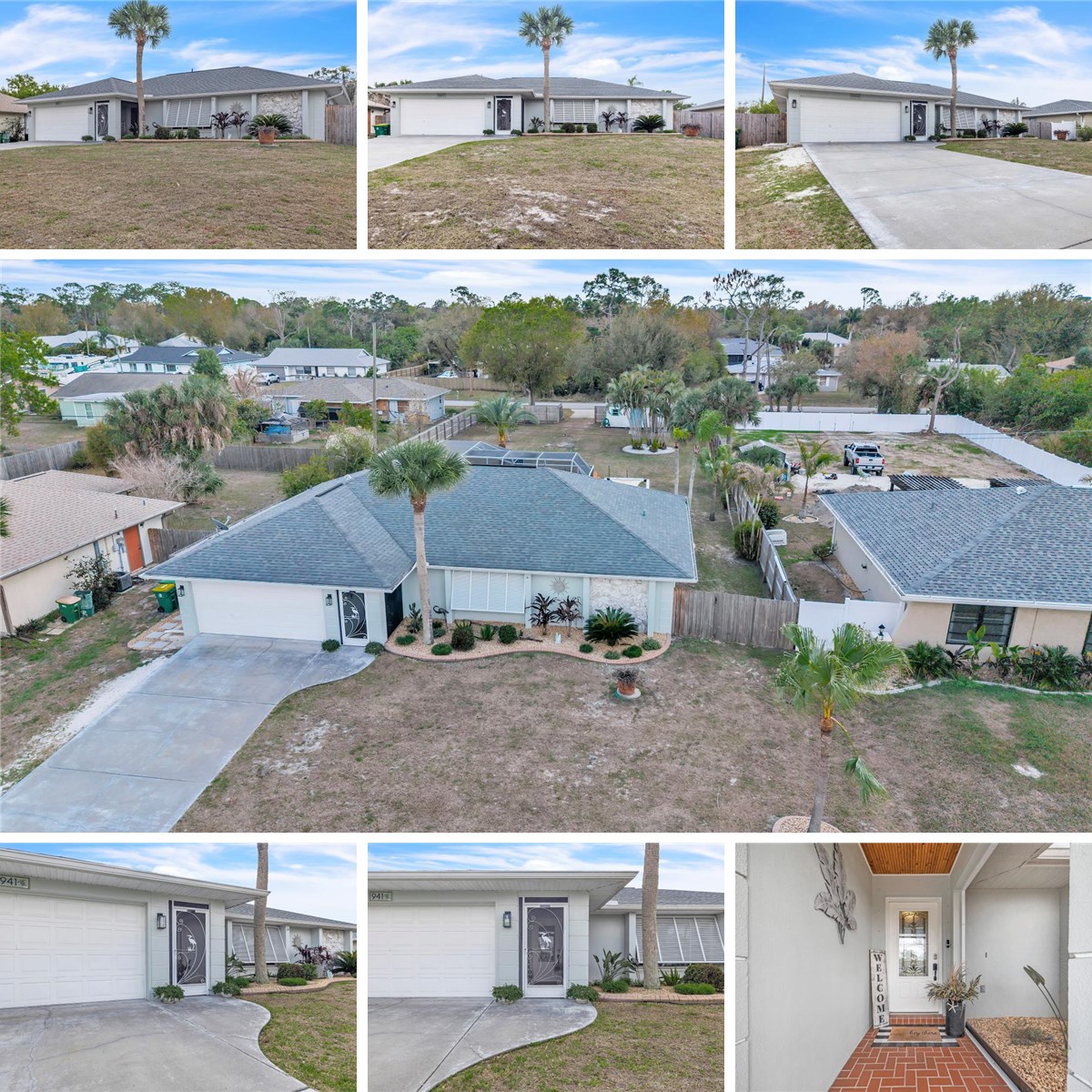 Beautifully updated 3-bedroom, 2-bathroom Florida pool home offers approximately 1,700 square feet of living space with a highly desirable open split floor plan designed for comfort and functionality. Situated on a rare double lot, the property provides abundant outdoor space for entertaining, recreation, and relaxation. The soft, neutral exterior, clean architectural lines, and mature landscaping create a welcoming first impression, complemented by a wide driveway leading to a two-car garage and a charming screened-in front entryway. Step inside to a bright foyer with tile flooring laid on the diagonal, flowing seamlessly throughout the main living areas, all of which feature soaring cathedral ceilings that enhance the home’s open, airy ambiance. The living room includes an electric fireplace that serves as a stylish focal point. The kitchen, overlooking the living and dining spaces, perfectly balances style and function. Crisp white cabinetry with modern hardware, glass-front display cabinets, and a stainless-steel range hood create a bright, contemporary feel, while quartz countertops, a farmhouse-style sink, and stainless-steel appliances enhance both aesthetics and usability. A large center island with shiplap accents provides ample storage and seating for four. Pendant and recessed lighting, along with under-cabinet illumination, brighten the space, while large sliding doors open directly to the lanai and pool area, creating a seamless indoor–outdoor experience. The laundry room is conveniently located off the kitchen, adding practicality to the home’s thoughtful layout. The spacious primary suite is a serene retreat, featuring abundant natural light, wood-look flooring, direct access to the lanai and pool, and a custom walk-in closet. The ensuite bathroom includes a walk-in shower, granite-top vanity, and convenient pool access. On the opposite side of the home, two private guest bedrooms with wood-look tile flooring and built-in closets share a beautifully finished bathroom with a walk-in tiled shower, forming a comfortable and functional guest wing. Step outside to your screened-in pool oasis, fully enclosed within a large pool cage. The sparkling heated pool is surrounded by brick paver decking, while the covered lanai features tiled flooring and an industrial-style ceiling fan, providing ample space for lounging or entertaining. A spacious paver-stone patio includes a designated grilling area with overhead shade canopy, perfect for outdoor cooking or dining. The expansive backyard enhances both privacy and flexibility, offering room for gardening, recreation, or storing a boat, trailer, or other toys, all while maintaining an open, airy feel. The yard is fully fenced with a gate at the opposite end, a fire pit area and 24x10 metal shed add additional convenience and enjoyment. Additional updates and features include a new roof (2020), new A/C (2025), water softener, hurricane shutters, fresh interior/exterior paint, plantation shutters, and new ceiling fans throughout. This home combines modern upgrades with thoughtful design for Florida living at its finest. Located in an established neighborhood with proximity to US-41, I-75, shopping, dining, hospitals, and top-rated parks and beaches ensures everyday convenience.